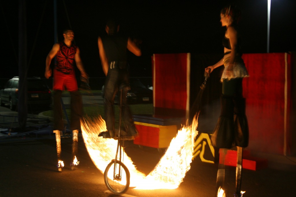 One of my favorite moments on stage was with our friend Edwin, a Pilobolus dancer, and a very fit and strong performer. We were performing our fire stilt act, but we had not yet won over our rowdy, dare I say bratty, audience (I know we’re not supposed to say that but it’s the truth!!). During the performance, some of the unruly boys were taunting him. In response, he ripped his shirt off in the middle of the act and threw it at them. It was totally shocking… and hilarious. It rocked the audience. The girls went crazy and the boys got pretty quiet. He took back our power and let them know we were in charge of this journey. After that moment, we had a good show.